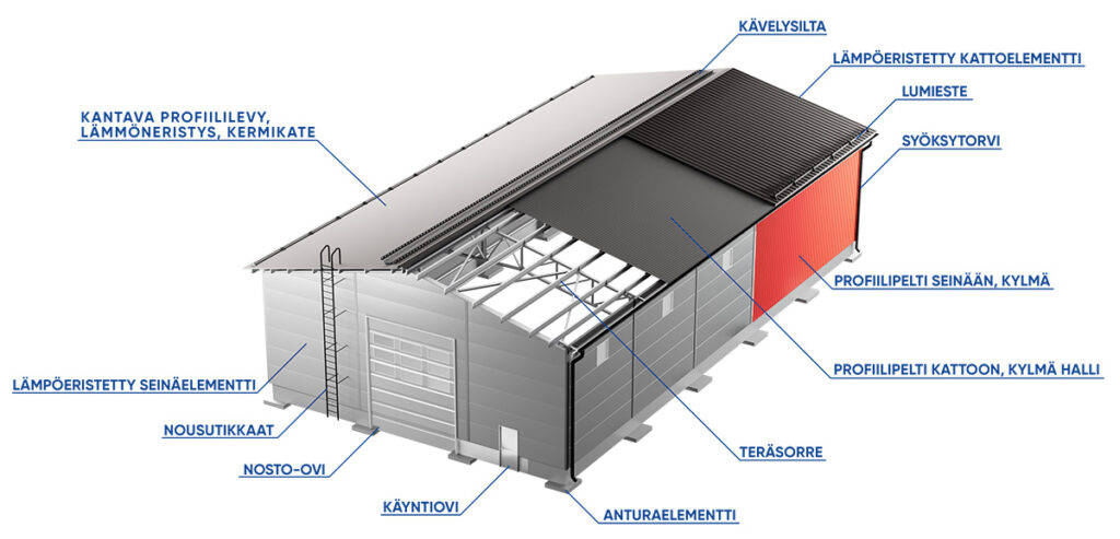 Kylmähalli | Vakiohalli Lämmin halli | Vakiohalli Katos